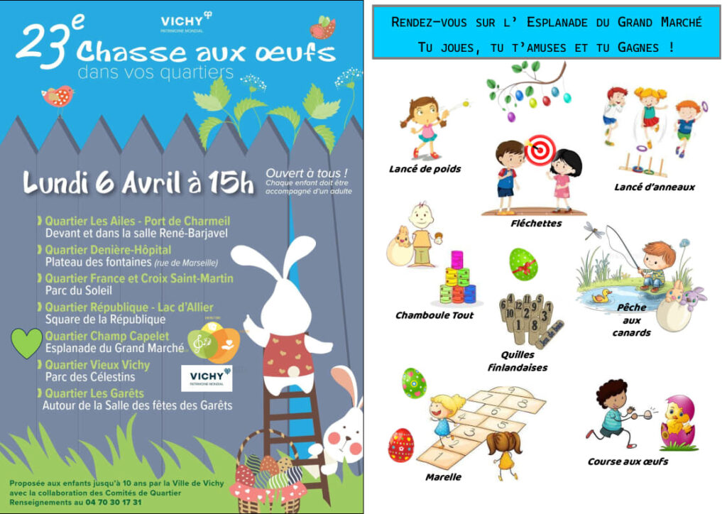 23ème Chasse aux oeufs dans vos quartiers : Lundi 6 avril à 15h Esplanade du Grand Marché de Vichy