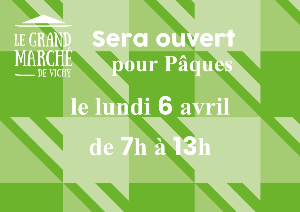 Pour Pâques, le Grand Marché de Vichy sera ouvert le lundi 6 avril 2026 de 7h à 13h !